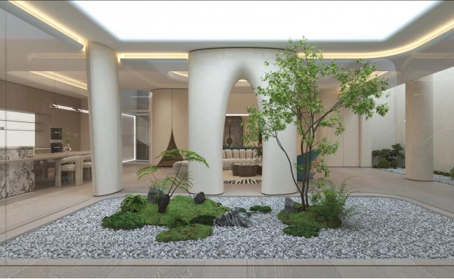 一家三口,喜歡溫馨舒適雅致的空間,木色與石材的搭配是空間更自然舒適