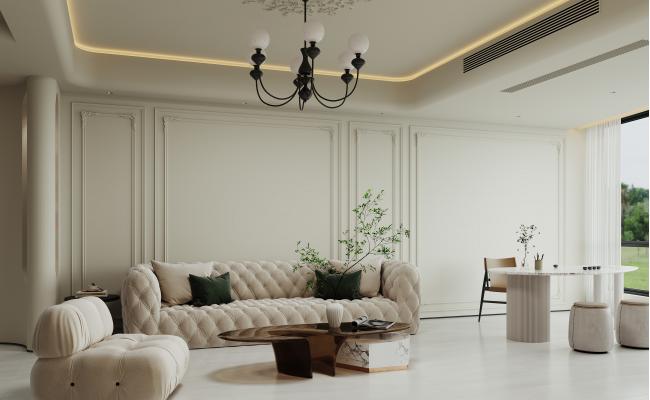空間以珍珠白與淺金為基調(diào),精細(xì)雕花線條勾勒墻面與天花。大型水晶枝形吊燈與壁燈呼應(yīng),光線經(jīng)多處鏡面折射,倍顯璀璨。家具選用曲線柔美的天鵝絨材質(zhì),搭配洛可可式鎏金邊幾。細(xì)節(jié)處點(diǎn)綴手繪花卉與古典雕飾,整體營(yíng)造浪漫典雅、輕盈奢華的法式宮廷氛圍。