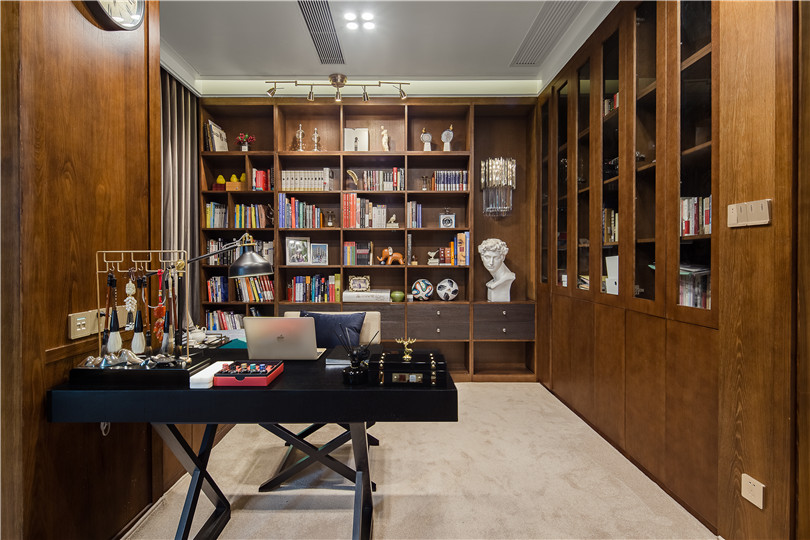 書(shū)房延用橡木色,配以米色的地毯,沒(méi)有過(guò)多的裝飾,房主的藏書(shū)便是這里真正的主人。