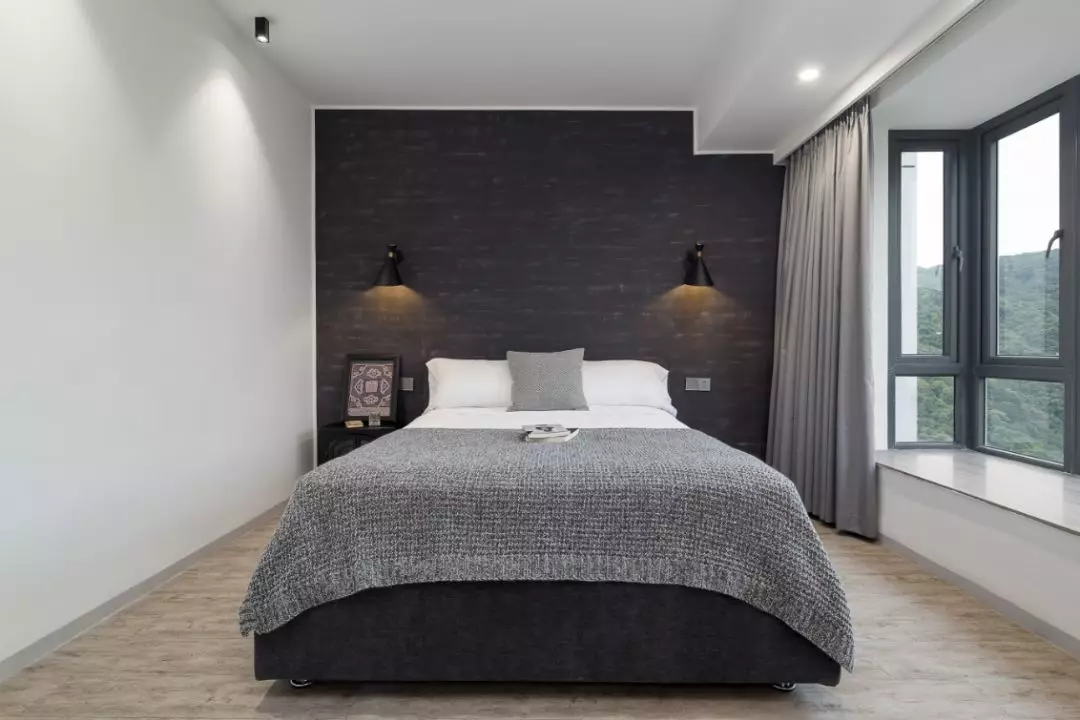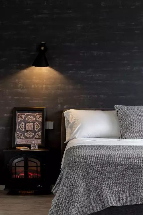 高級灰作為次臥的主調(diào),電子壁爐的新穎床頭柜,滿足功能性同時,營造有溫度、有人情味、有藝術(shù)性的生活情境。