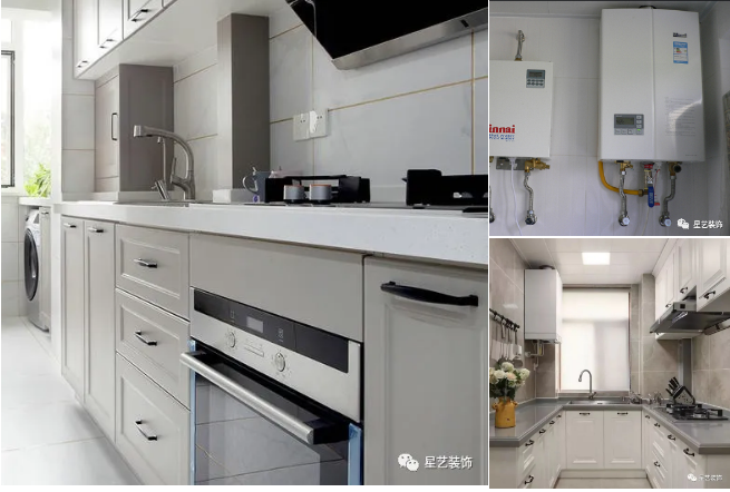 在這些安裝中應當先安裝熱水器,完成之后,再吊頂,后安裝櫥柜,水槽等。