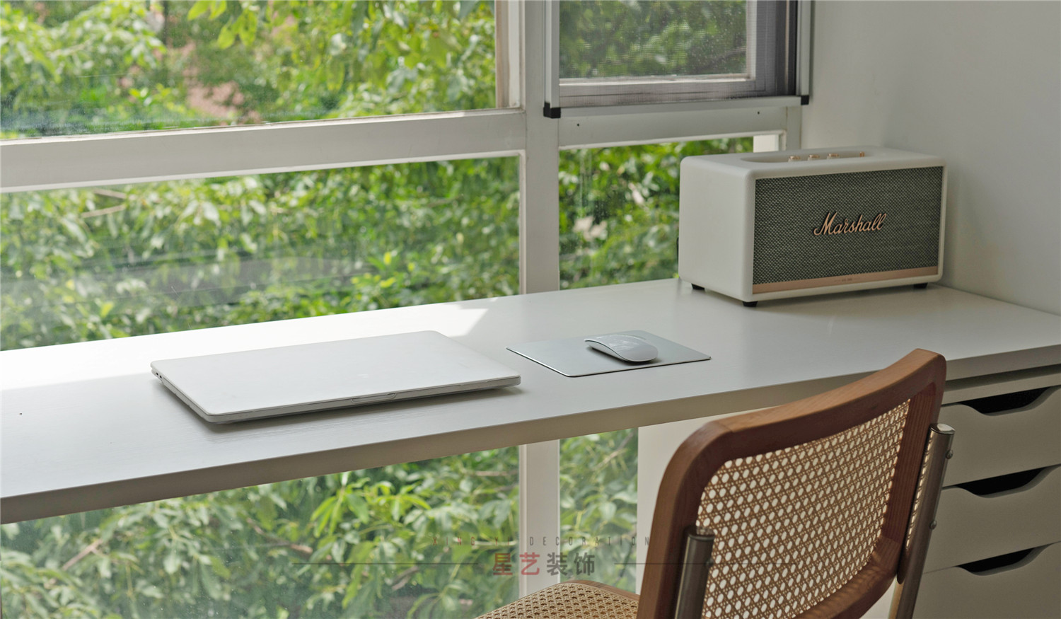 照明是摒棄傳統一個主燈點亮整個房子的方式,采用射燈,軌道燈,燈帶局部照明,讓整個房子更有層次,不管是軌道燈打到墻上反射出來的還是燈帶從天花折射出來的燈光都是非常柔和的,即使是射燈也是采用4000K(中性光)防炫射燈,讓整個空間更加柔和舒適。墻面及所有房門跟柜體也是統一白色讓整個房子更整體,踢腳線也是采用宅邊白色貫穿整個房子。