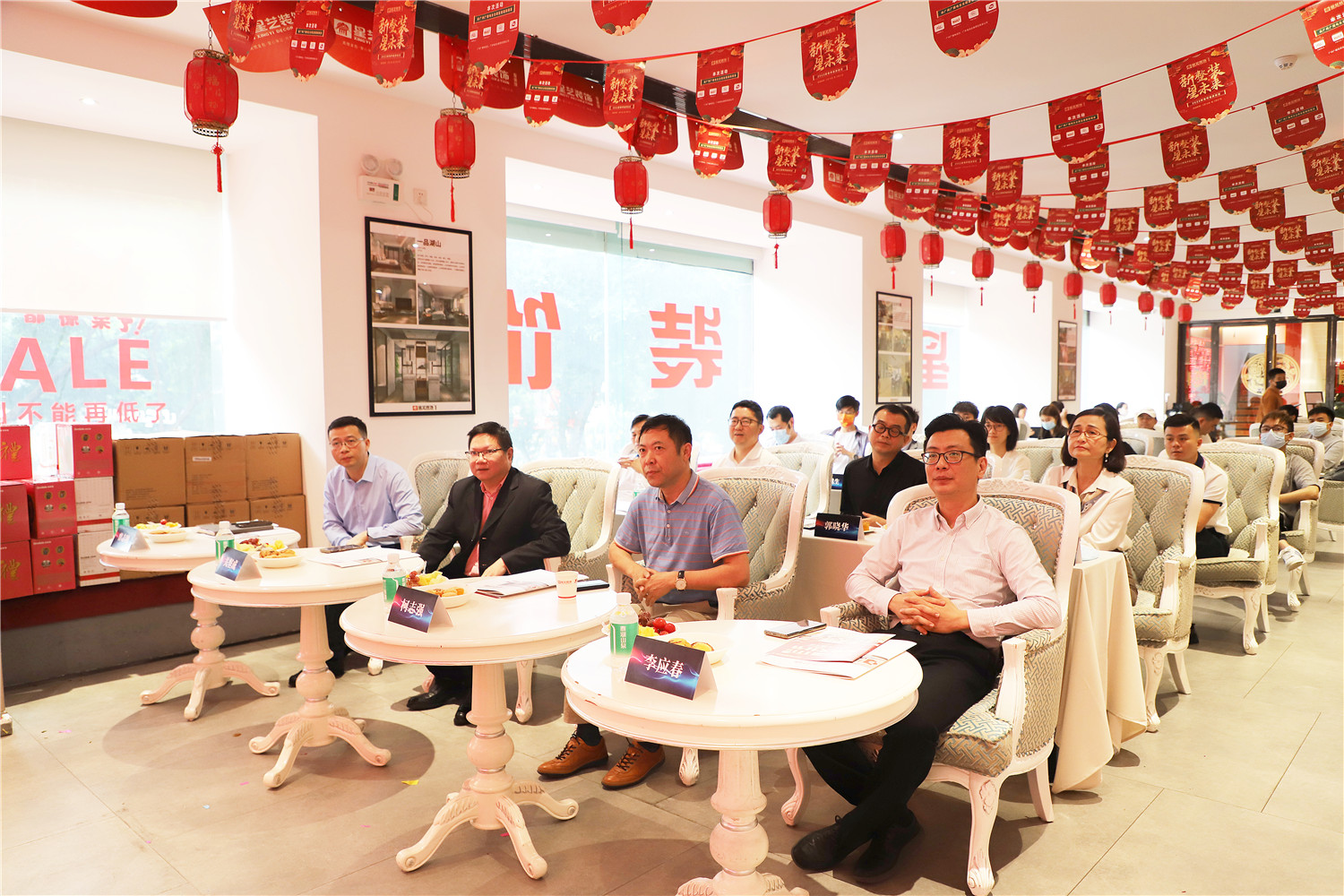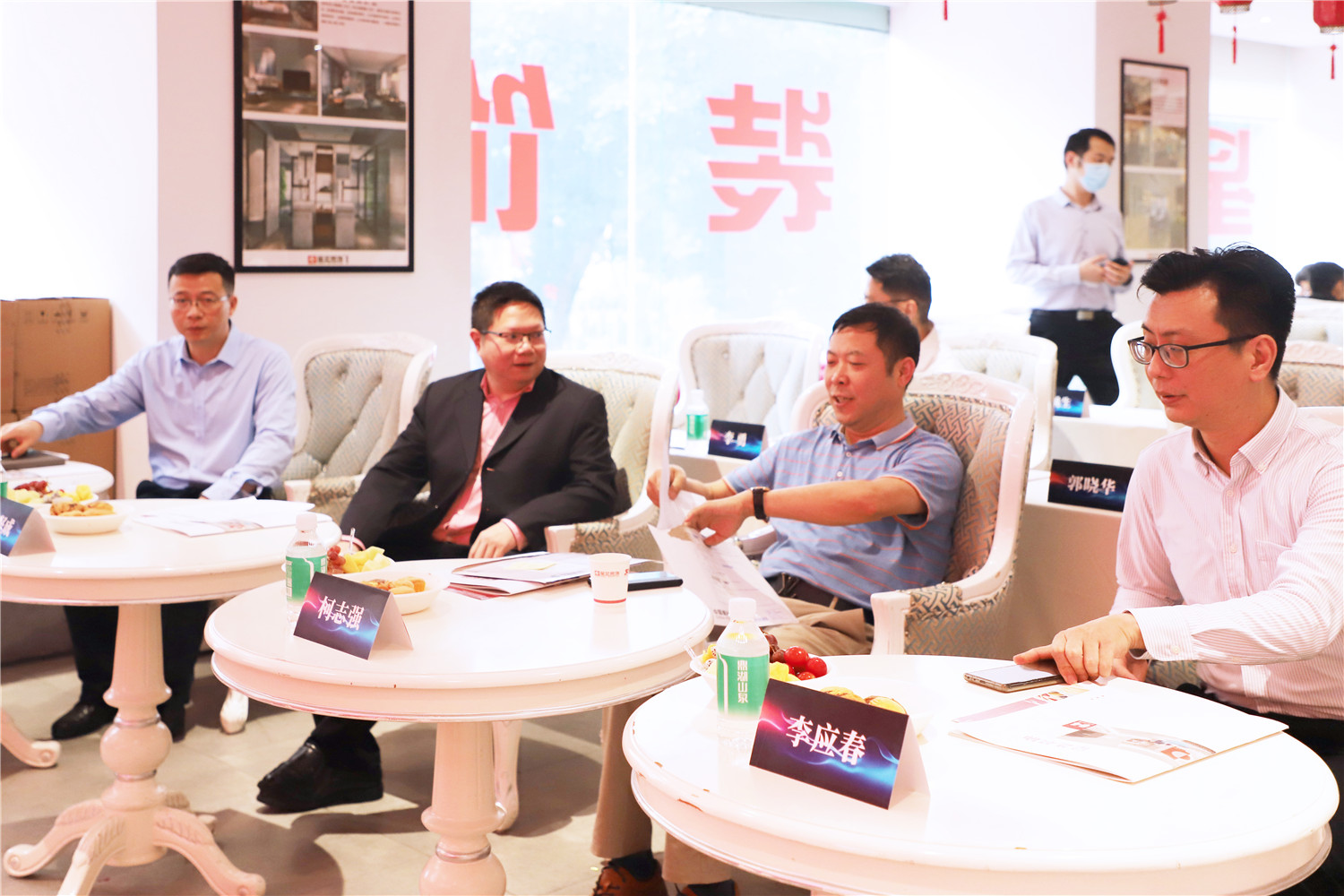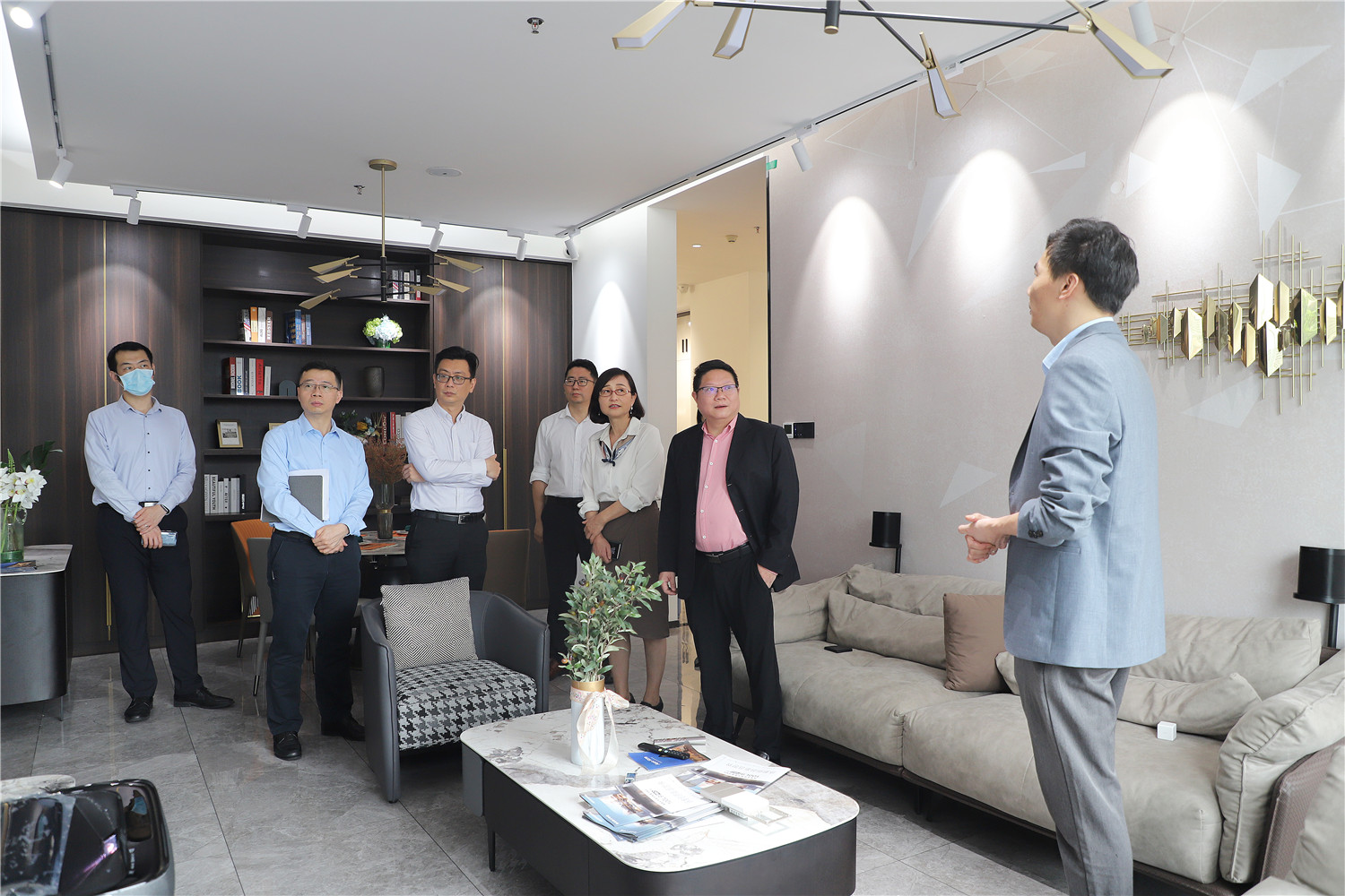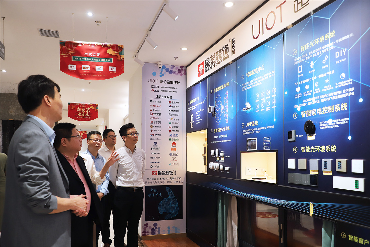 星藝裝飾廣州分公司總經(jīng)理柯志強,副總經(jīng)理劉亦萍、總設計師郭曉華 、工程總監(jiān)汪維亮、星藝整裝館總經(jīng)理黃桃生、設計總監(jiān)江文鋒,整裝工程部經(jīng)理石峰;