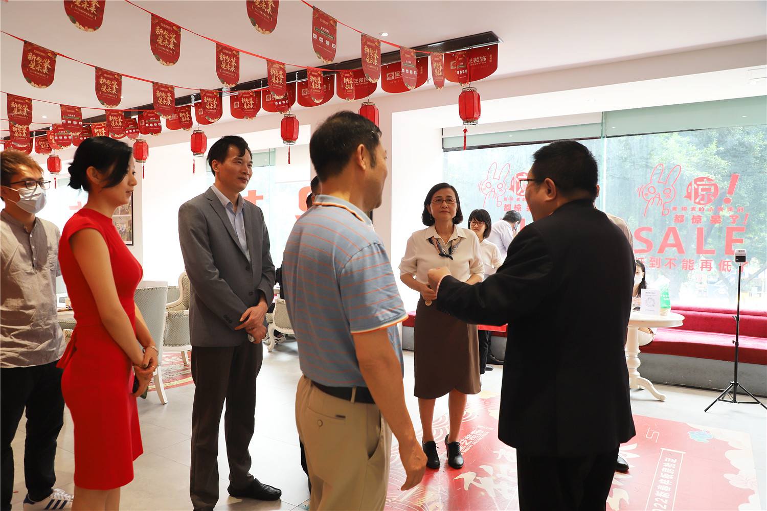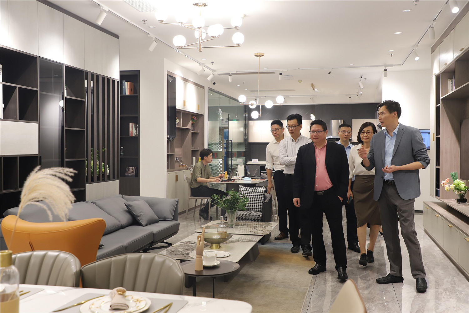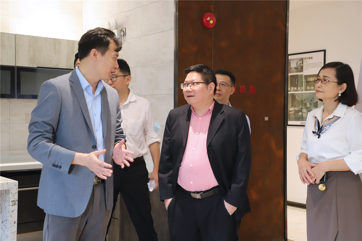 簽約儀式開始前,星藝整裝館總經(jīng)理黃桃生帶領中國電信公司領導一行人步入展館進行參觀活動,并為來訪人員進行展廳的詳細介紹。