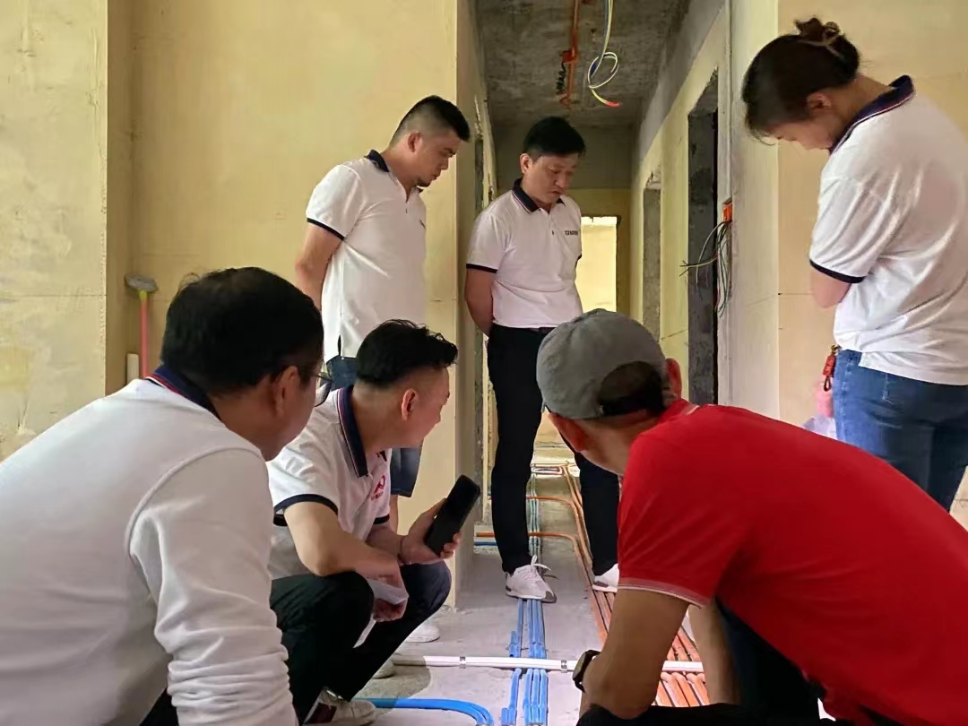 4月19日這天,星藝裝飾廣州公司總經理柯志強,副總經理劉亦萍,工程部監(jiān)理汪維亮,總設計師郭曉華等人同時分批帶領設計部和工程部的總監(jiān)對工地進行質量抽查;作為家裝工程的核心環(huán)節(jié),工程質量關系到入住后的舒適度甚至安全性,此次走進工地現(xiàn)場實地考察也給大家展示最真實的家裝細節(jié)。