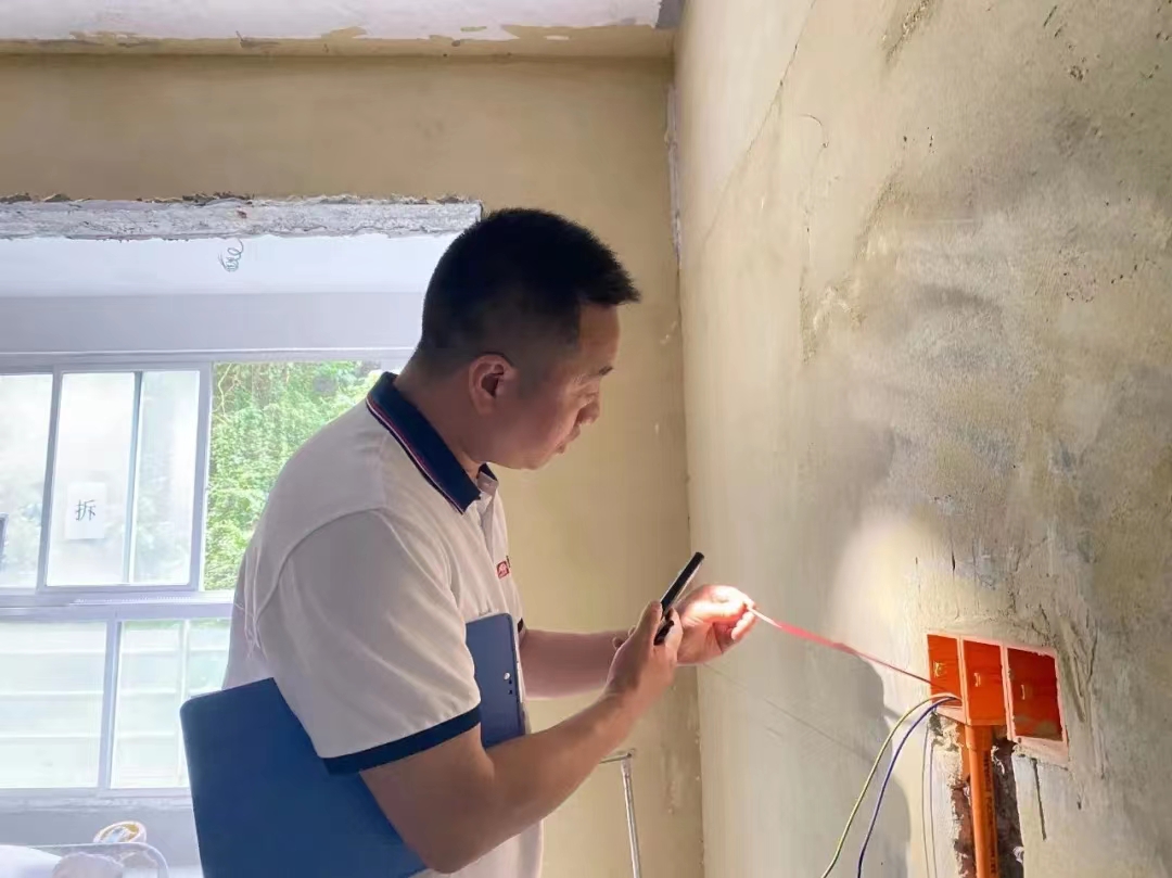 墻面平整度和水電改造查驗都是必不可少的環(huán)節(jié),線槽均勻美觀、深度適等都極為重要,墻面垂直度偏差小于3mm符合標準,而一張100元人民幣約為0.1mm,非常直觀!