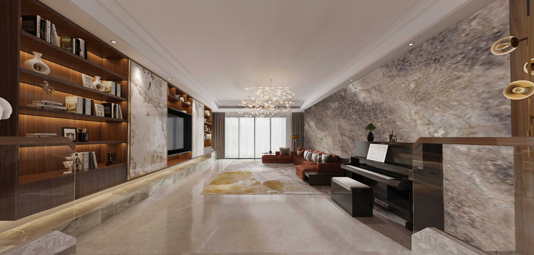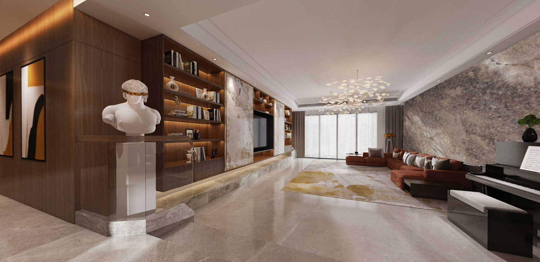 400㎡現(xiàn)代臺(tái)式大平層 | 胡桃木色的心物相契