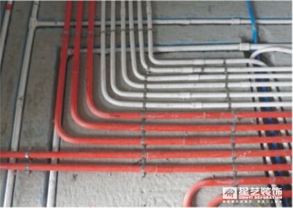 行業首創雙色電工套管,根據星藝裝飾標準工藝的要求為了更好的規范電路工程,確保工程品質,及監理與業主對電工項目的檢查與驗收,采用優質的阻燃型有色PVC塑料管作強、弱電線保護管材。紅色——強電及照明用電專用,藍色——弱電項目專用。